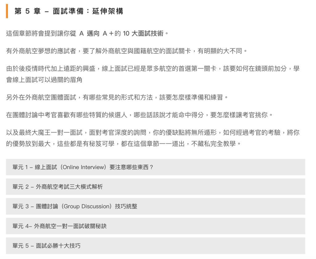 另外第五章的部分也都是針對外商航空招考準備來設計的,也要趕快去看課程影片