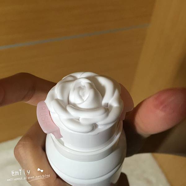 擠出來就是一朵玫瑰花喔!是不是美翻了!之前它剛上市我就已經買了,這次是來補貨的~呵呵泡沫很細緻,玫瑰花香聞起來很舒服~