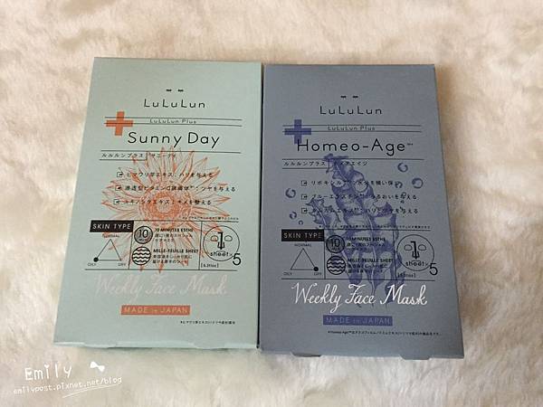 再來要介紹這個已經很有名的Lululun面膜,現在已經有出盒裝的囉!一盒各有5片,左邊這款是增加彈力和皮膚亮度,適合油性肌膚,右邊這款是保濕保水訴求,適合乾性肌膚,都是一週保養一次的面膜喔!