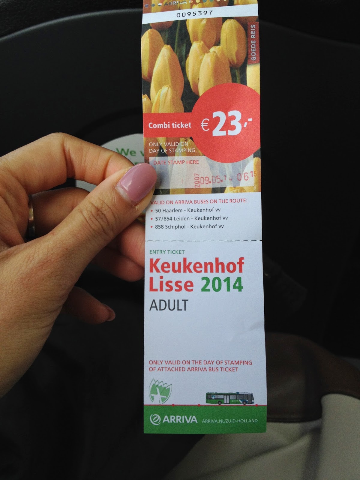 我們的飯店位於市區近Amsterdam Rai站,我們先搭地鐵到史基浦機場 (Schiphol),接著依網路上資訊找到一家叫AKO(Books&Travel)的書店買票,它的位置在Arrival Hall4機場入境第四廳,我們購買的是聯票,成人一張23歐 (從機場到花園的來回公車票+門票)
