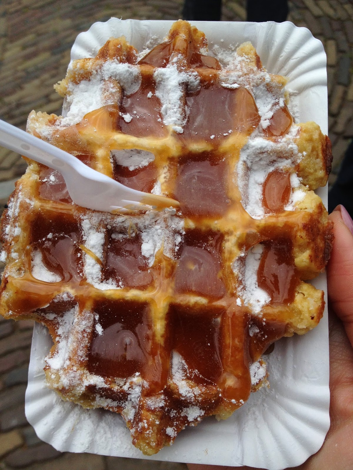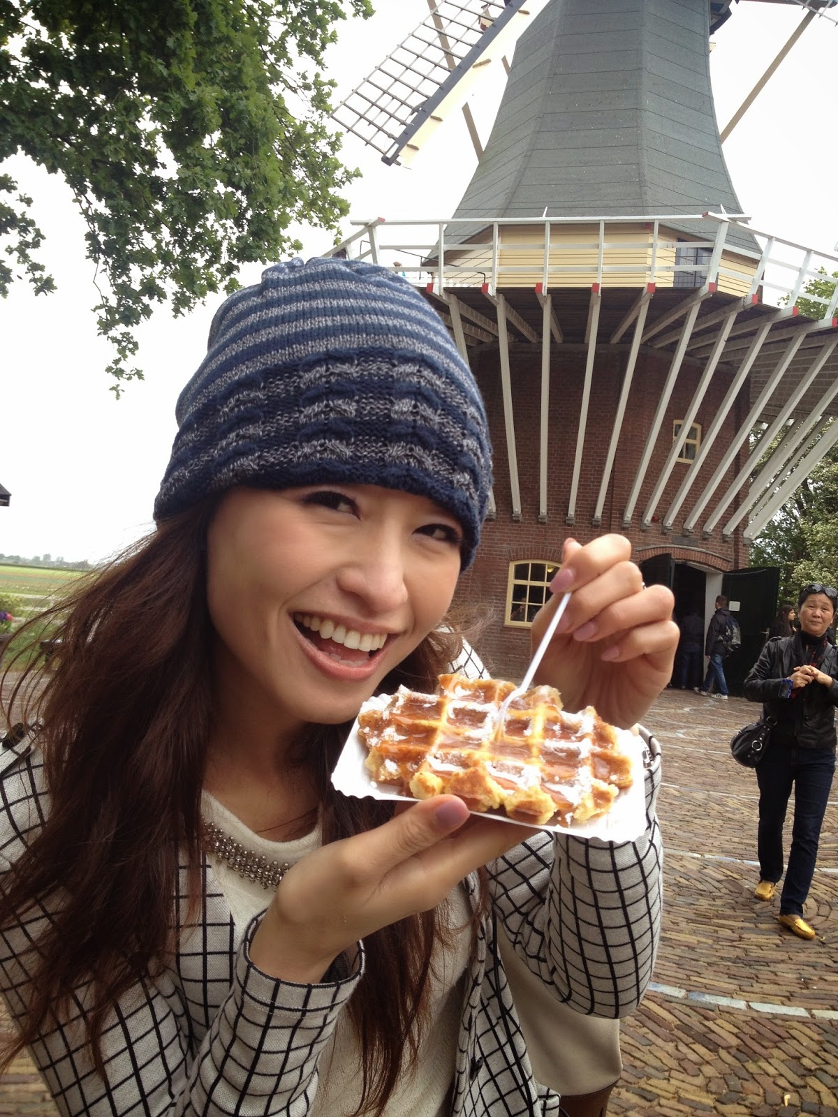 在風車旁邊傳來陣陣的鬆餅香味一直在跟我招手阿,看起來超好吃的現烤鬆餅,淋上焦糖和糖霜簡直是好罪惡的match,當天風很大又只有十來度,我並沒有穿很保暖的外套,所以這個鬆餅讓我頓時好溫暖阿!而且居然不會太膩口,以為焦糖一定很甜,但不知不覺一口一口就吃完了~我吃的是厚的鬆餅一份3.5歐,也可以選擇焦糖煎餅喔。