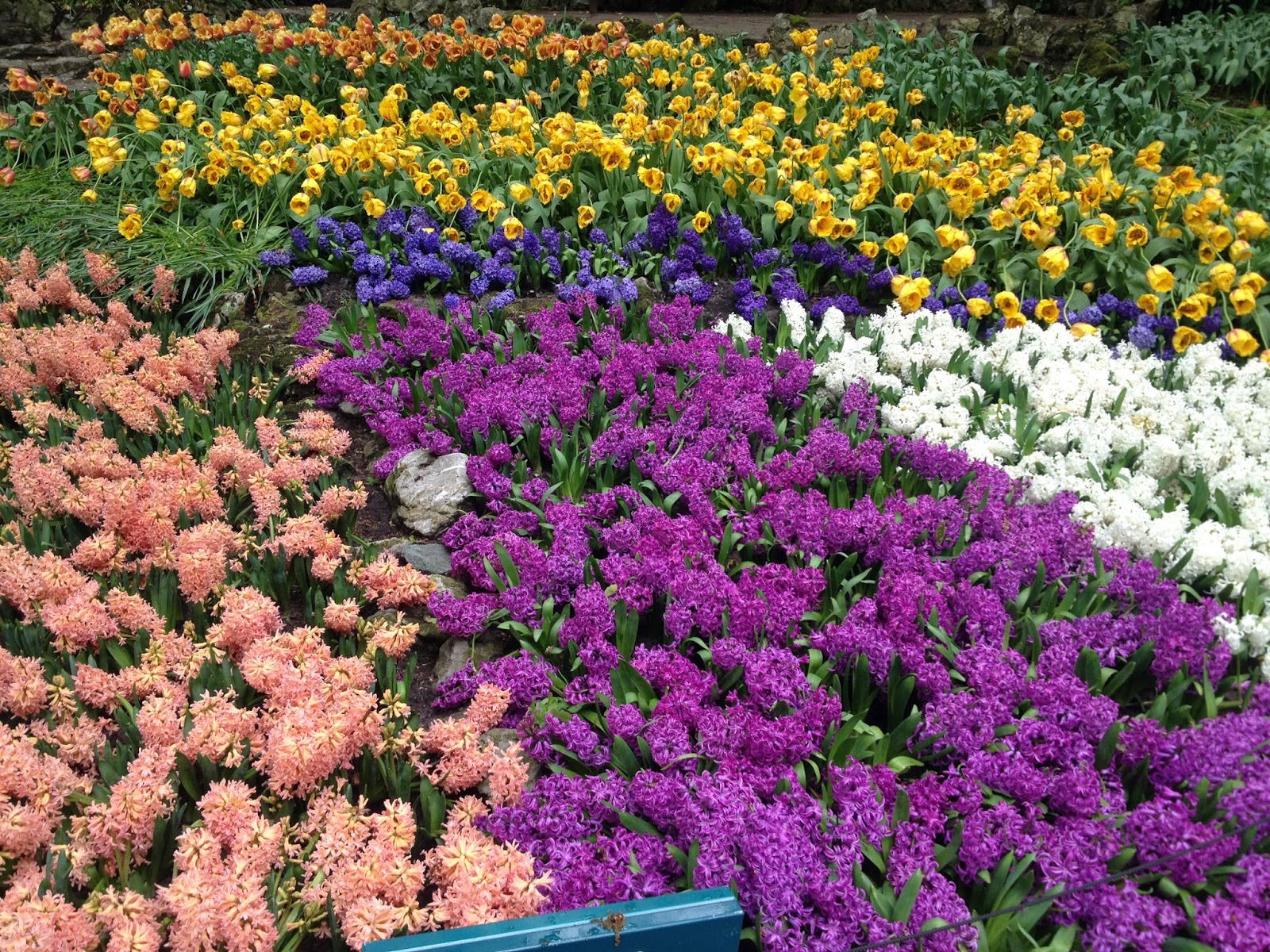 沿著花園漫步就可以看到色彩繽紛的鬱金香,每一處都讓人想佇足拍照,純白、粉紅、桃紅、深紅、紫色、粉橘.....美呆了的花海,真的是前所未見的視覺饗宴 (((o(*゚▽゚*)o)))